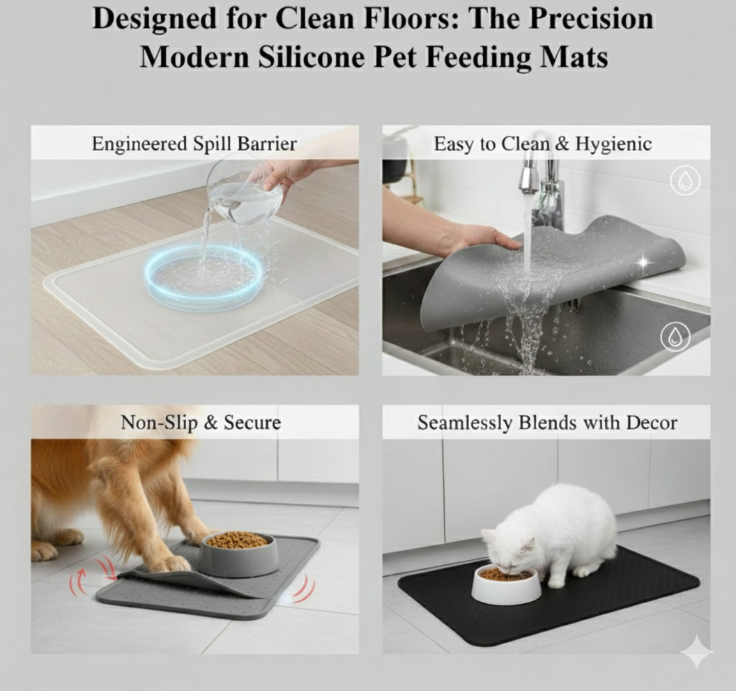مصممة للأرضيات النظيفة: حصائر تغذية الحيوانات الأليفة المصنوعة من السيليكون الحديثة